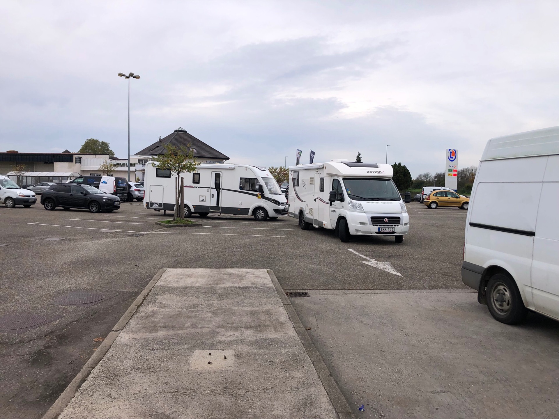 Någonstans i Frankrike blir vi tvungna att tanka. Frankrike befinner sig givetvis i en transportarbetarstrejk nu när vi skall passera på vår resa mot Spanien. Det betyder att bensinstationerna inte får fyllt sina tankar, framförallt dieseltankarna därför är många stationer helt enkelt stängda eller så hänger en röd lapp på dieselpumparna! Till slut så hittar vi en station vid ett köpcentra som är öppen. Restriktioner fanns förstås, man fick bara tanka upp till 40 Euro!